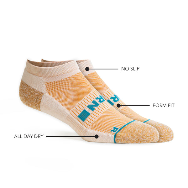 FEATURES: Medium Cushion. No Slip. All Day Dry.